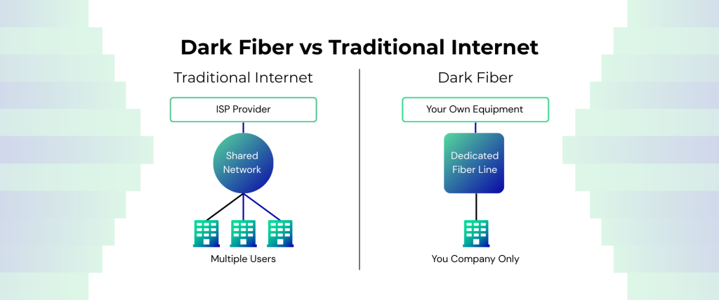 - Scalability: With dark fiber, you can increase bandwidth by upgrading your own equipment at both ends. You don’t need to wait for a provider to add a new line.